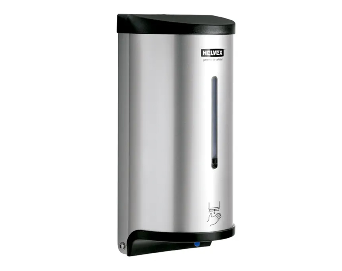 Dosificador electrónico de baterías con sensor para jabón líquido. Requiere baterías alcalinas AA. Acabado aluminio.